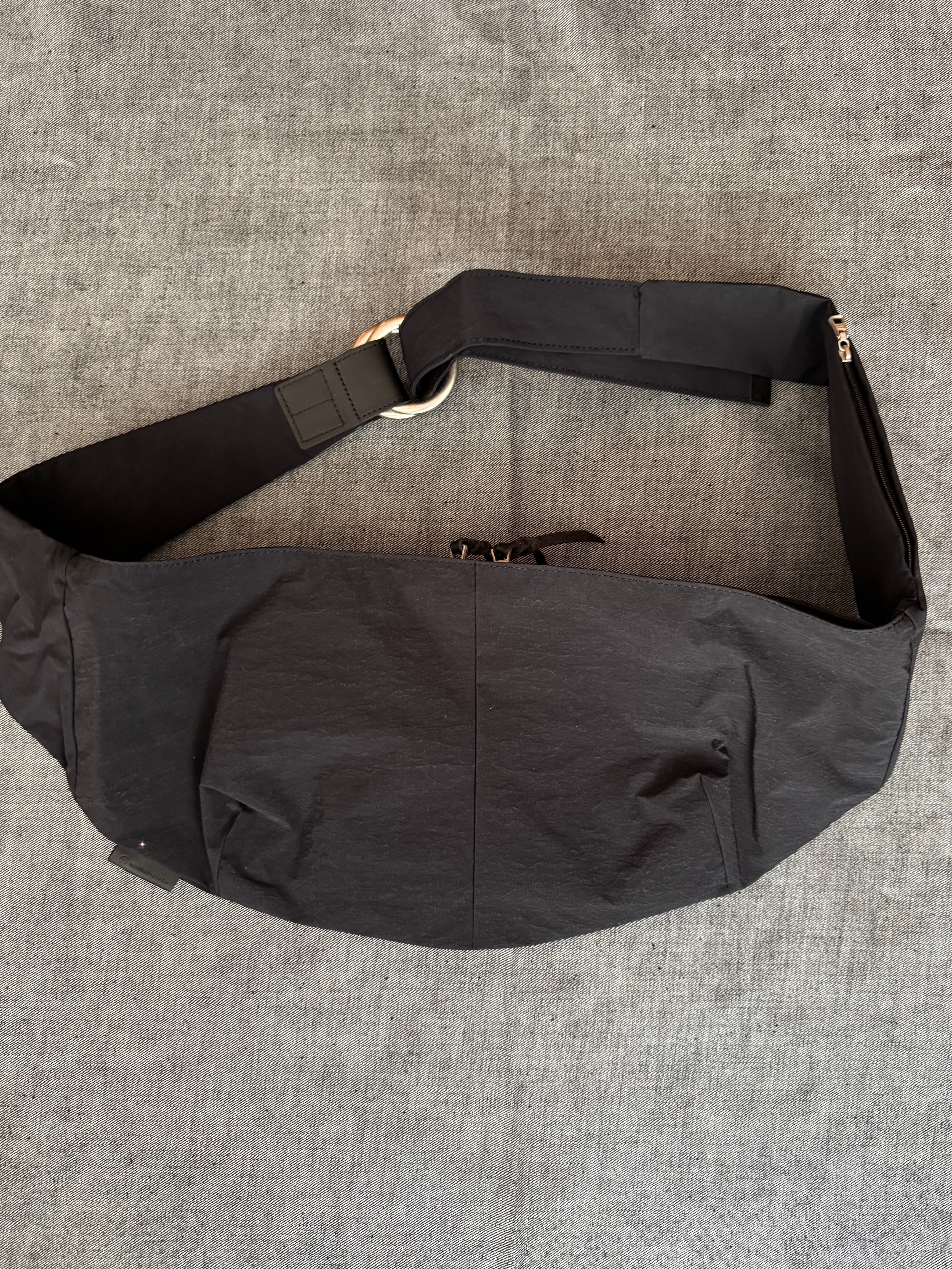 Un diseño simple con una tela con tejido de textura que destaca por su firmeza, arrugas y un acabado mate. El corte tridimencional ofrece más espacio de almacenamiento del que aparenta y el diseño es para llevarlo de frente como enla espalda.